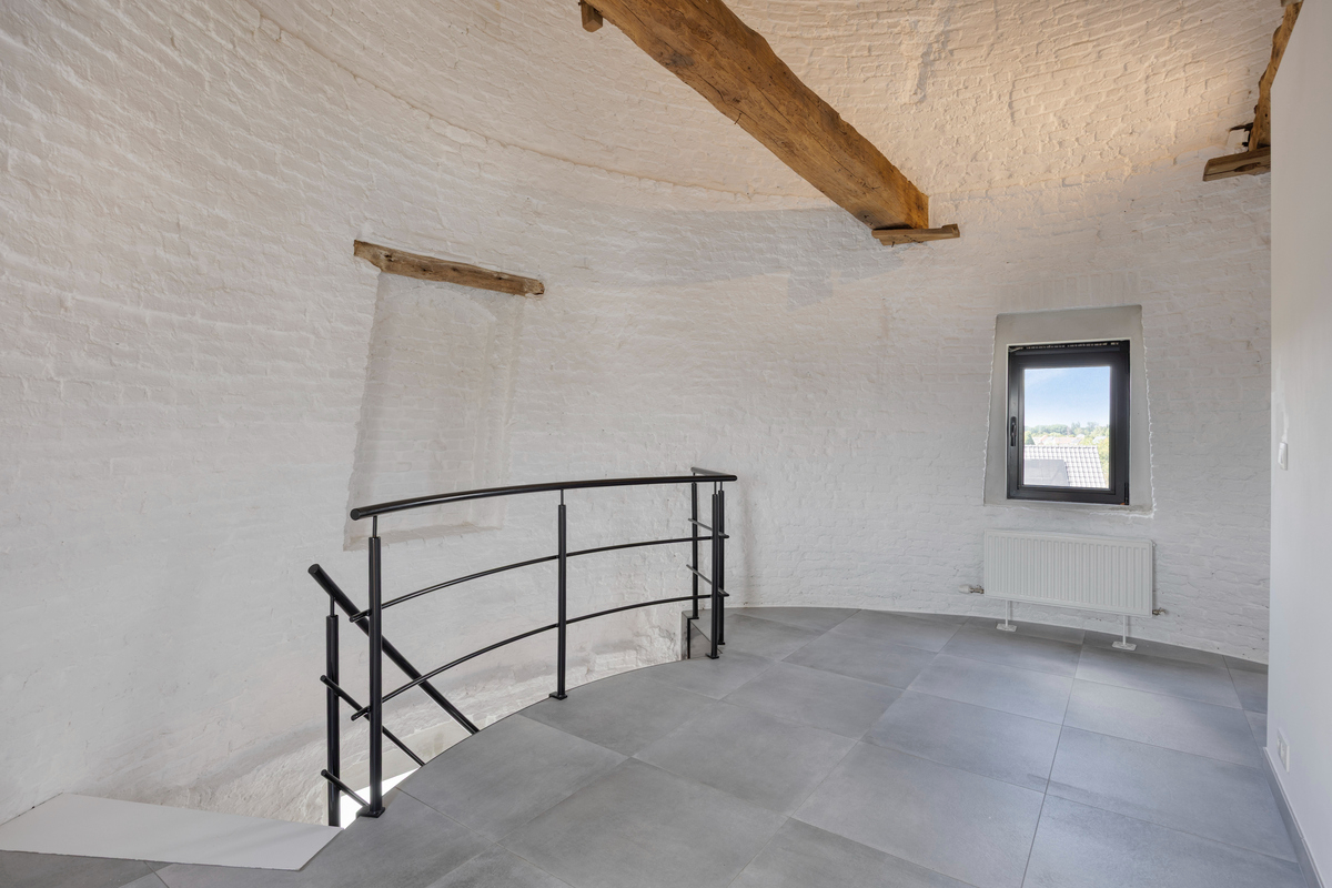 - Eén slaapkamer/hobbyruimte gelegen in de molenromp – met karaktervolle ronde muren